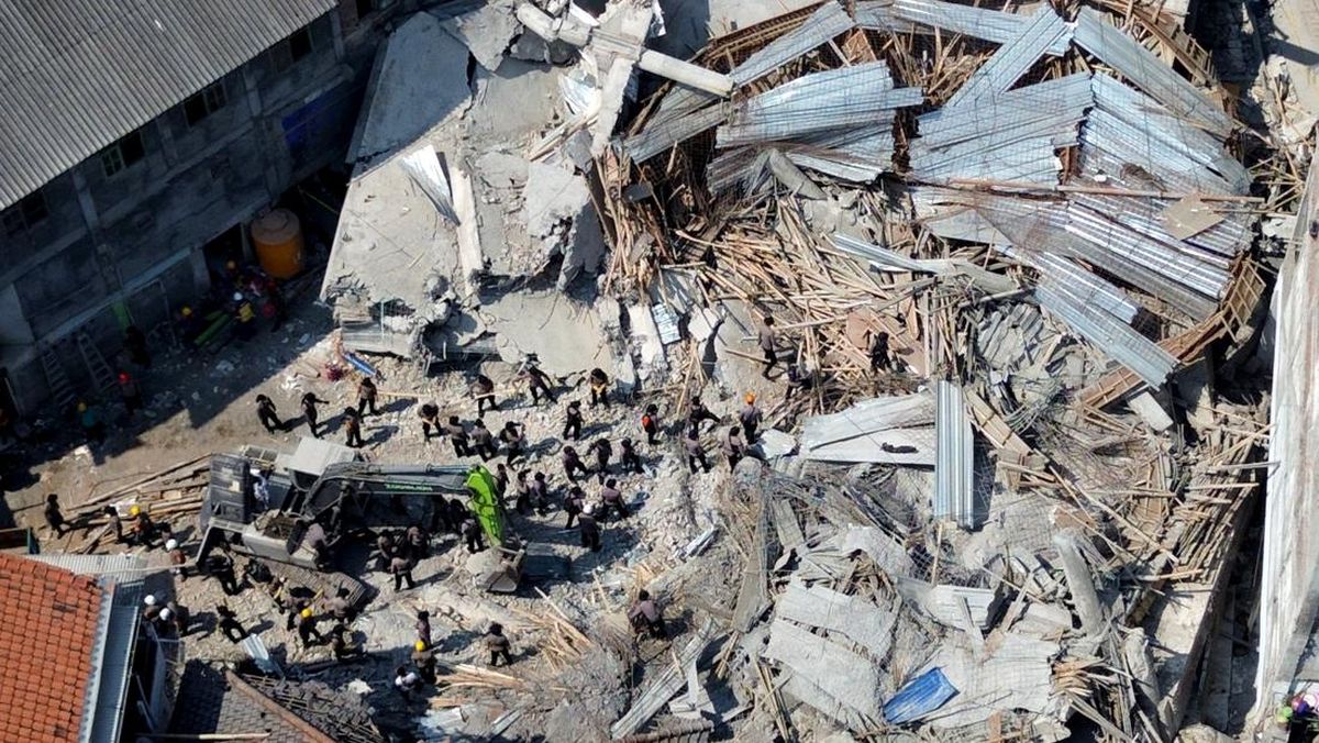 Bangunan Lama Ponpes Sidoarjo Miring Akibat Tertimpa Gedung yang Ambruk